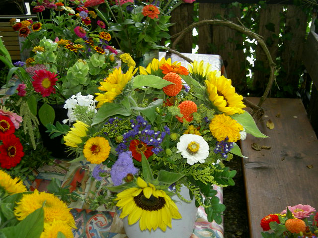 BlumenstraussMeine Leidenschaft bringt es mit sich, dass ich mit diesen Blumen zum Teil auch Arrangements herstelle. Das geht über das relative simple Binden von Sträussen bis zu kreativen Installationen und Kombinationen von Blumen, Aesten, Bestandteilen von Sträuchern etc.