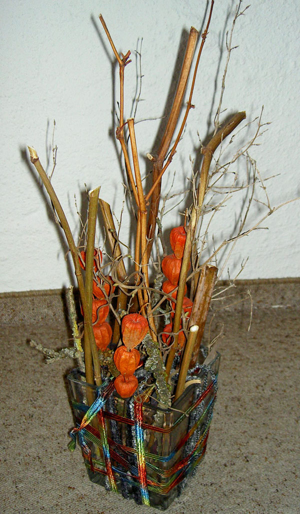 Dieses Gewächs fasziniert mich und ich habe mir verschiedene Möglichkeiten überlegt, diese Pflanze in meinen Kreationen zu verwenden. Hier ist ein anderes Beispiel dafür: Eine Kombination von Knöterich und "Lampionblumen" :-)